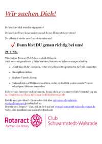 Der vor zwei Jahren gegründete Rotaract Club Schwarmstedt-Walsrode, ein Partner des Rotary Clubs Schwarmstedt Aller-Leine-Tal, ist auf der Suche nach neuen Mitgliedern.