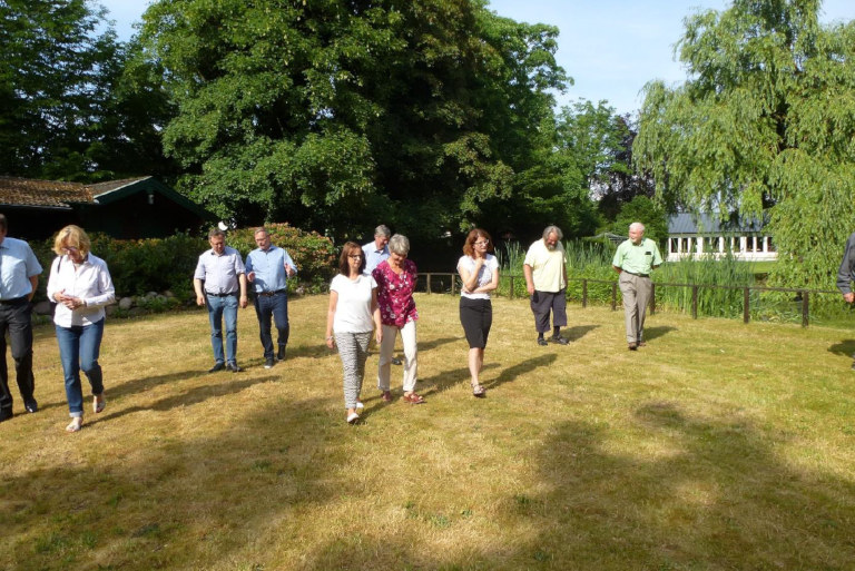 Bei strahlendem Sonnenschein wurde zunächst das wunderschöne, grüne Stiftungsgelände erkundet, um anschließend energiegeladen in die LAG-Sitzung zu starten. Zunächst widmete sich die LAG der Beratung zweier Projekte. Der vom Bürgerverein Ahlden und Eilte e.V. initiierte „Sophie-Dorothea-Tag 2018“ sieht vor, am Wochenende des 15. und 16. Septembers in Ahlden einen Festtag auszurichten, um an das Leben und das Schicksal der Kurprinzessin und sogenannten Prinzessin von Ahlden zu gedenken. Michael Kurth, der 1. Vorsitzende des Bürgervereins, war bei der Sitzung vor Ort, um den LAG-Mitgliedern Rede und Antwort zu stehen. „Die Investition ist nachhaltig angelegt und nicht nur für ein einmaliges Fest“, stellte er klar. „Wir haben vor, die Veranstaltung jedes Jahr auszurichten und das Fest sich zukünftig selber tragen zu lassen.“ Damit konnte er die LAG begeistern, die einstimmig für die Unterstützung des „Sophie-Dorothea-Tages 2018“ mit LEADER-Mitteln stimmte.