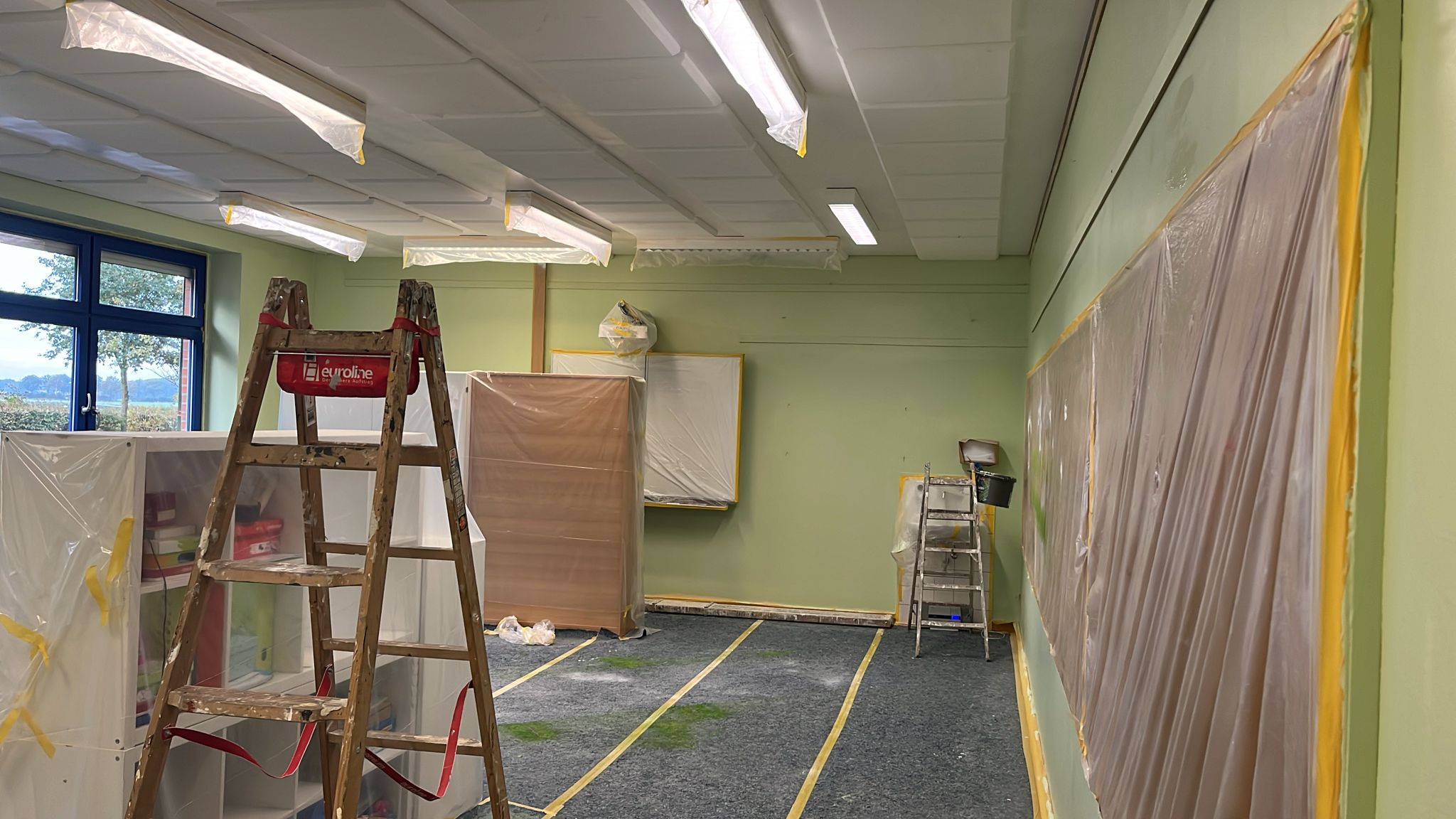 Zum Foto: Die Samtgemeinde Schwarmstedt nutzt die Herbstferien, um in den laufenden Unterhalt der Grundschulen zu investieren. Das Bild zeigt die Arbeiten an der Grundschule Buchholz. Foto: Gemeinde