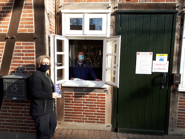 Dieser Service ist nur für Leserinnen und Leser gedacht, die Lesenachschub brauchen und soll nicht für die reine Rückgabe gedacht sein. Da alle Bücher bis zur Wiedereröffnung – voraussichtlich im Dezember - ohnehin verlängert sind, entstehen somit keine Nachteile. Die Übergabe erfolgt über ein Fenster neben der Seiteneingangstür des Uhle-Hofs. Die Termine werden mit genügend Abstand zueinander vergeben. Es ist bei der Abholung auf den entsprechenden Abstand und einen Mund-Nasenschutz zu achten. Es ist damit zwar keine spontane Ausleihe möglich, aber nach vorheriger Absprache kommen Kunden der Samtgemeindebücherei Schwarmstedt so an die begehrten Bücher.
