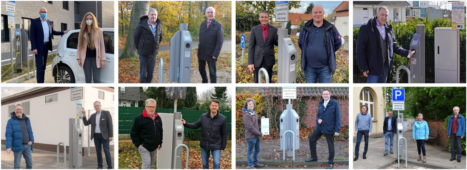 unten v.l.: Hambühren: Niels Jürgensen (Bauamtsleiter), Carsten Kranz (Bürgermeister); Samtgemeinde Ahlden: Karl Gerhard Tamke (Bürgermeister Hodenhagen), Carsten Niemann (Samtgemeindebürgermeister); Dörverden: Corbinian Schöfinius (Projektgruppe EMobilität), Alexander von Seggern (Bürgermeister); Schwarmstedt: Stefan Dreesmann (Sprecher Projektgruppe E-Mobilität), Björn Gehrs (Samtgemeindebürgermeister), Claudia Schiesgeries (Bürgermeisterin), Jörg Zöllner (Projektgruppe E-Mobilität)